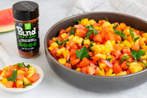 Looking for a light and refreshing appetizer that is the perfect combination of sweet, savory and spicy? Our Pineapple Watermelon Mango Salsa with Fire N Lime BLND will have your taste buds dancing from all the flavors!